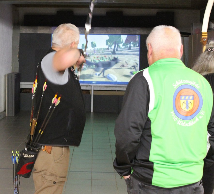 Für besondere Aufmerksamkeit sorgte ein unterhaltsames Duell zwischen Bürgermeister Andreas Hübgen und Ortsvorsteher Reiner Müller, die sich persönlich an Bogen und Projektion wagten – ein sympathisches Zeichen der Verbundenheit zwischen Verein und Kommune.