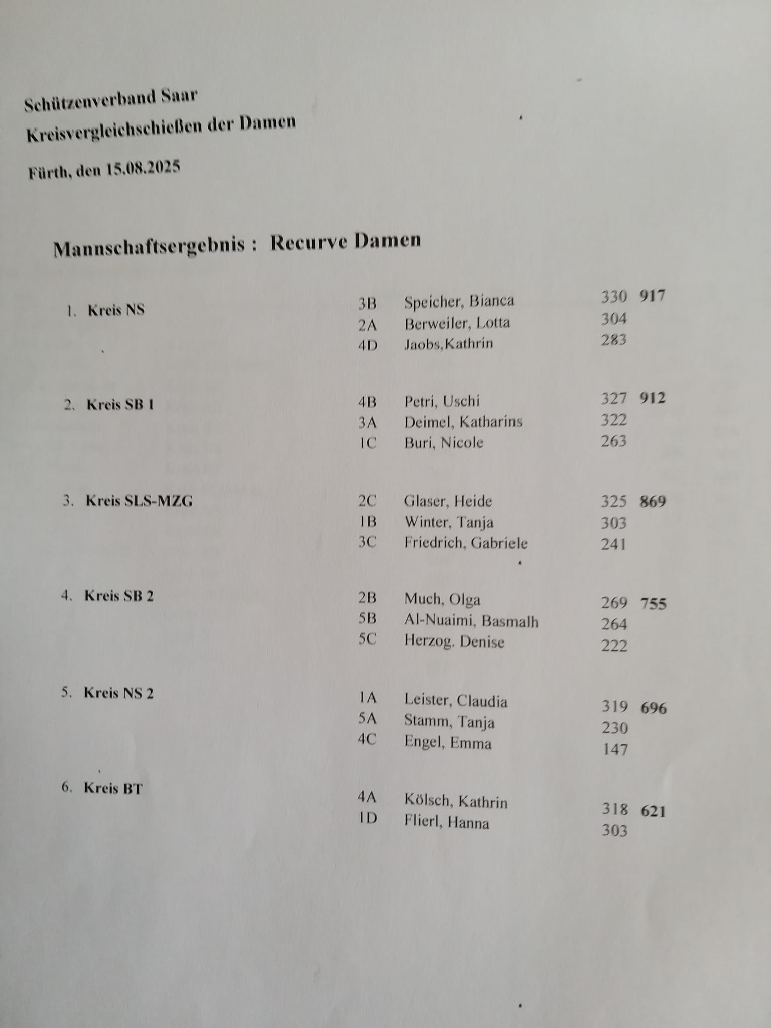 Fürth, 15. August 2025 – Am Feiertag Maria Himmelfahrt wurde das Gelände des Schützenvereins Tell 1929 e. V. Fürth zum Schauplatz eines sportlichen Höhepunkts. Beim Kreisdamenvergleichsschießen trafen sich die vier Kreise Bliestal, Nordsaar, Saarbrücken und Saarlouis-Merzig aufeinander und lieferten sich einen Wettkampf voller Spannung, Konzentration und Teamgeist.